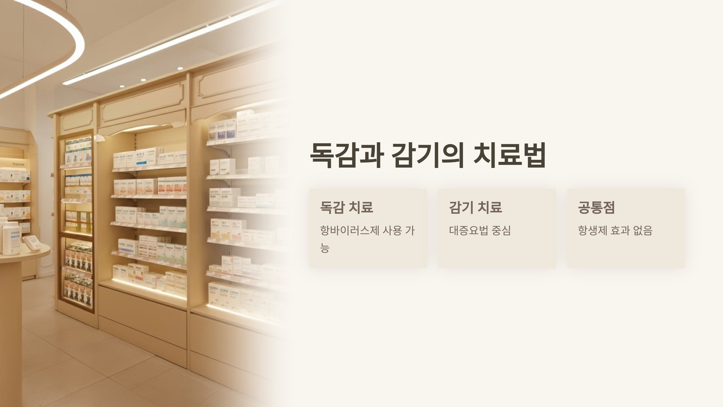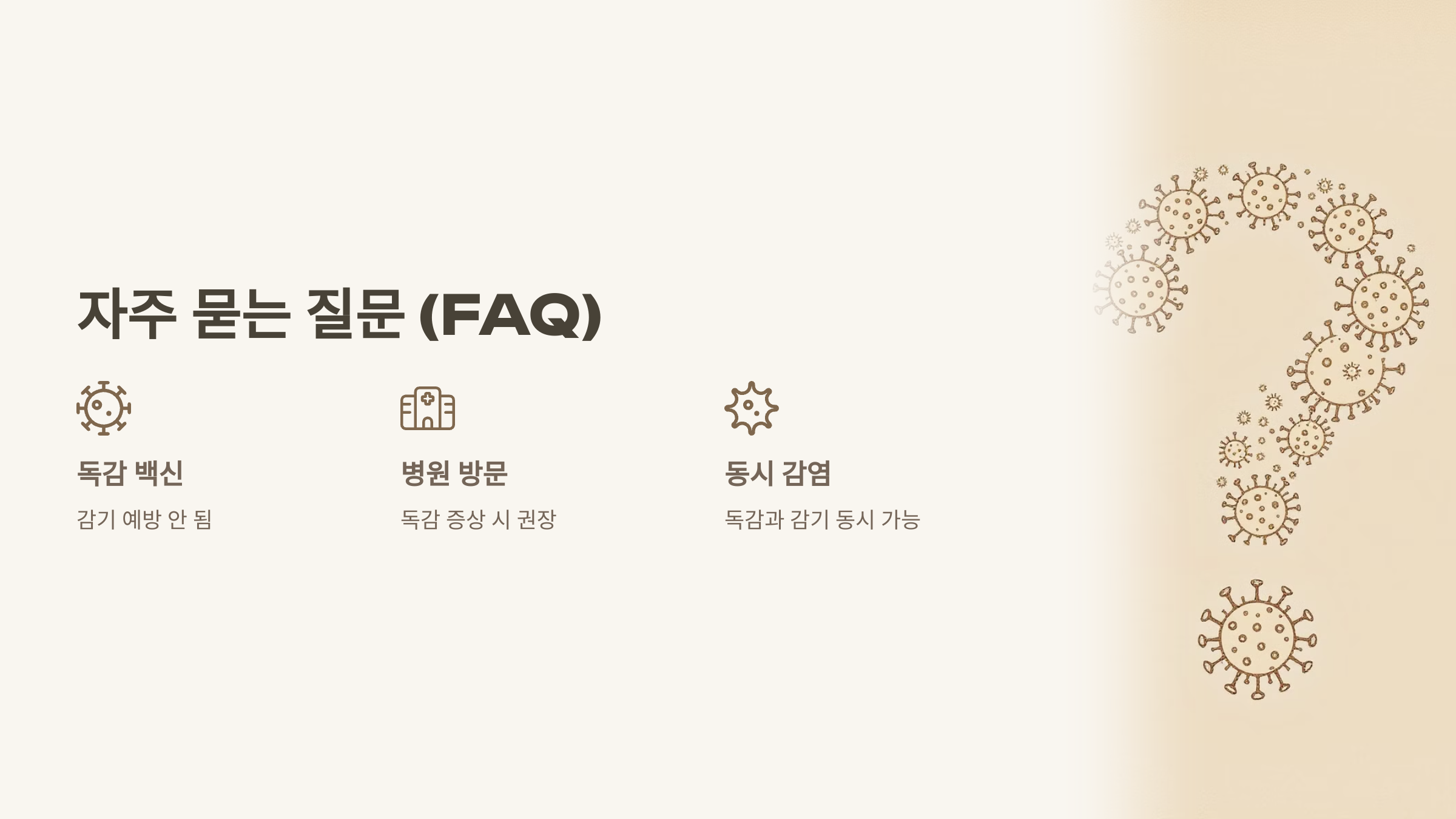 독감은 주로 특정 계절(가을~겨울)에 유행하며, 감기는 연중 언제든 발생할 수 있어요!