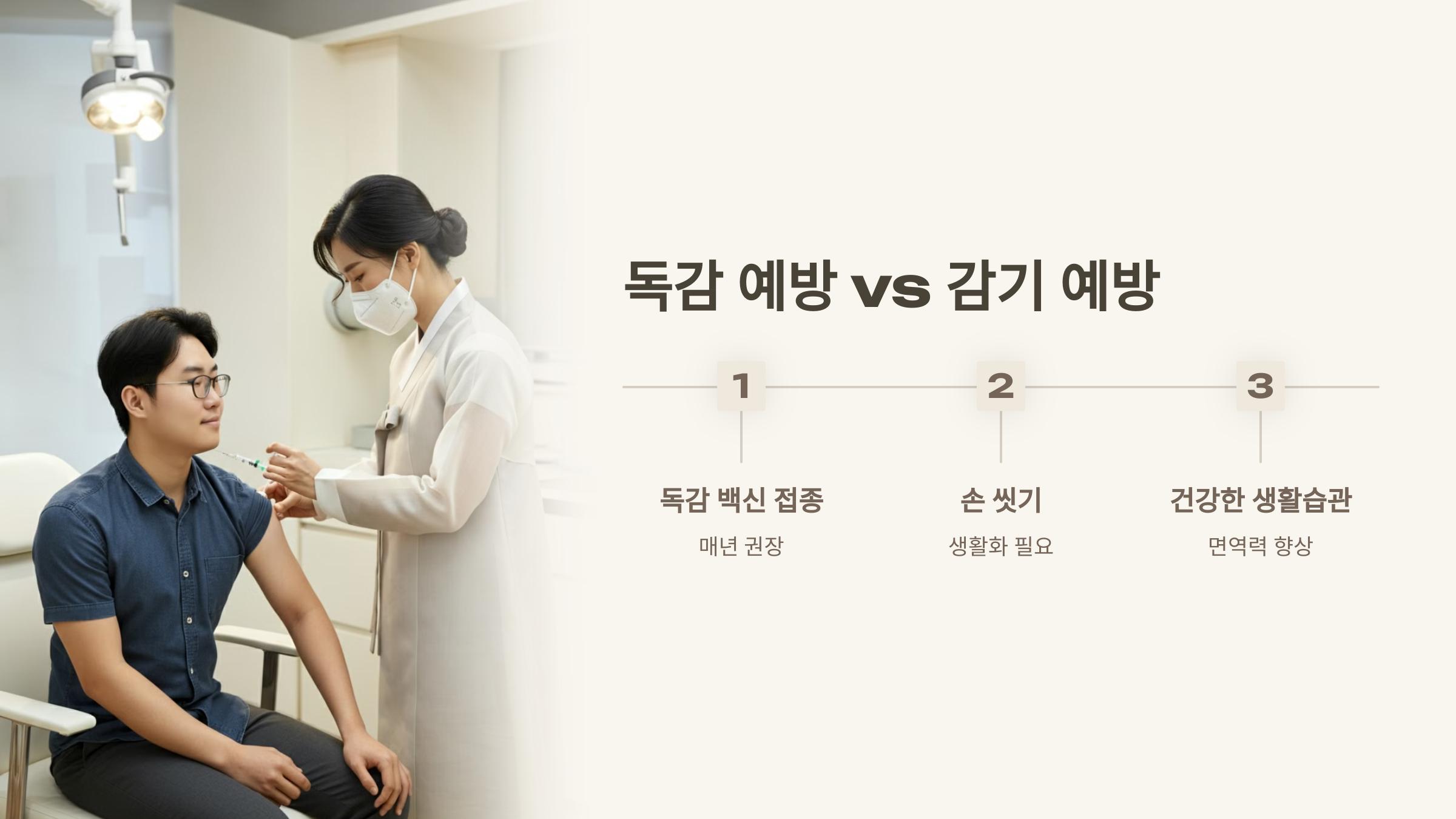 독감은 더 심각한 증상과 합병증 가능성이 크기 때문에, 예방과 조기 치료가 중요해요.