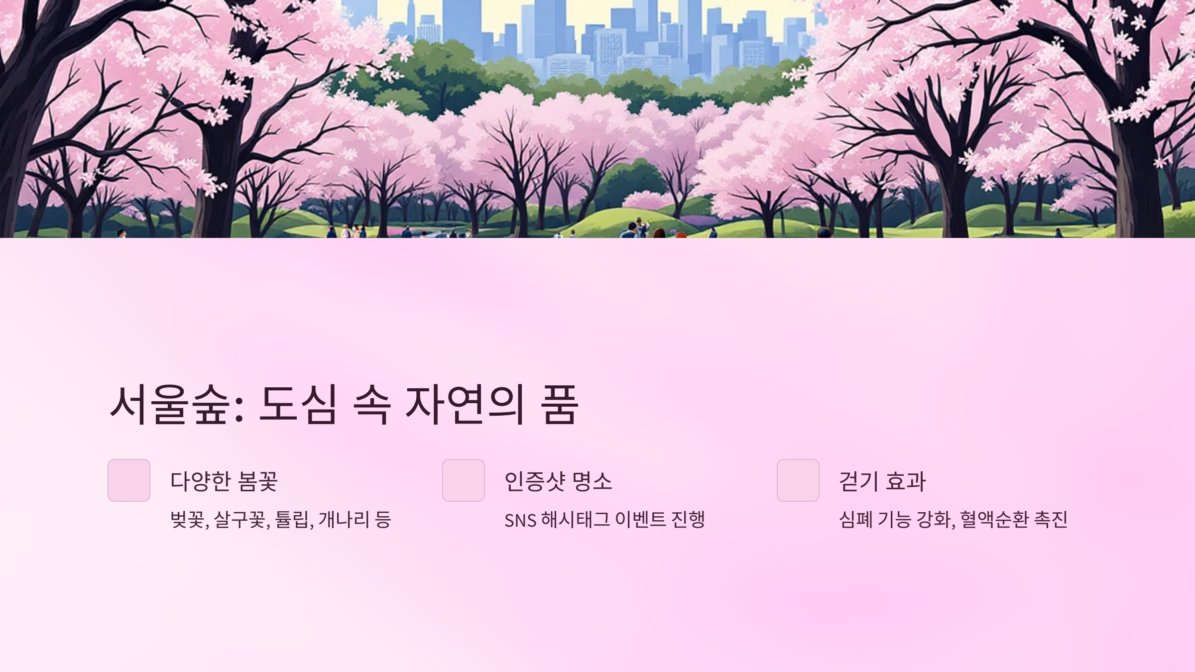 1️⃣ 서울숲: 도심 속 자연의 품에서 만나는 봄