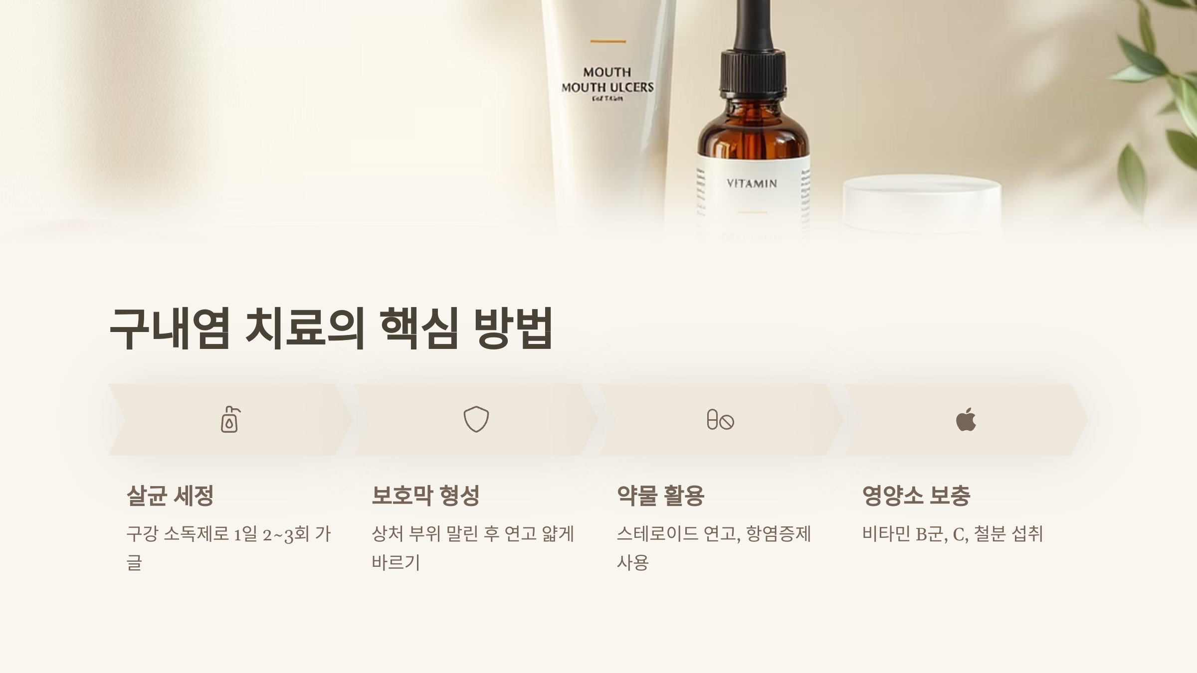 소독과 가글, 보호막 연고, 비타민 보충, 자극 피하기, 충분한 수분과 휴식, 그리고 필요시 전문의 상담까지!