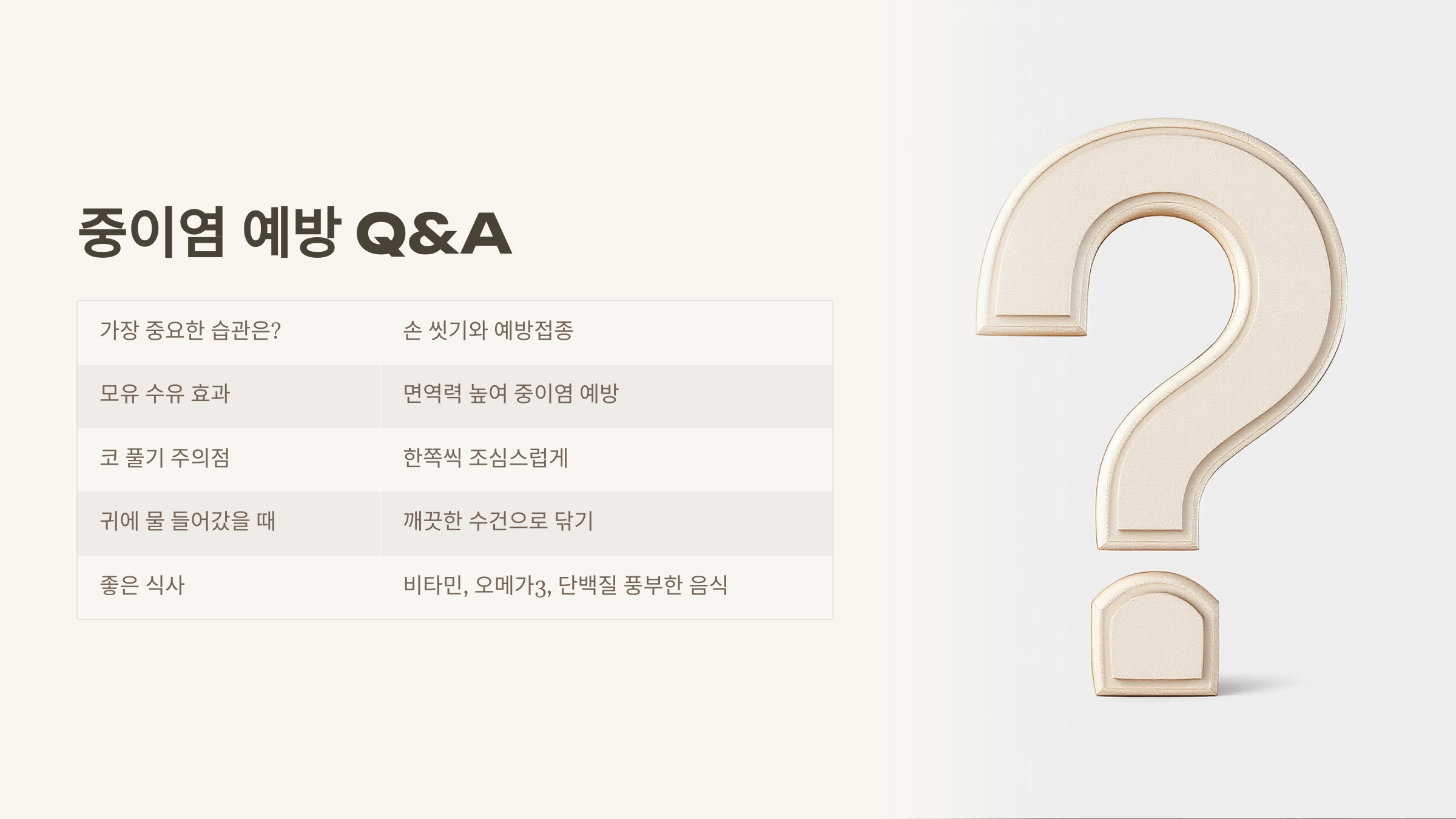 Q1. 중이염 예방에 가장 중요한 습관은 무엇인가요?