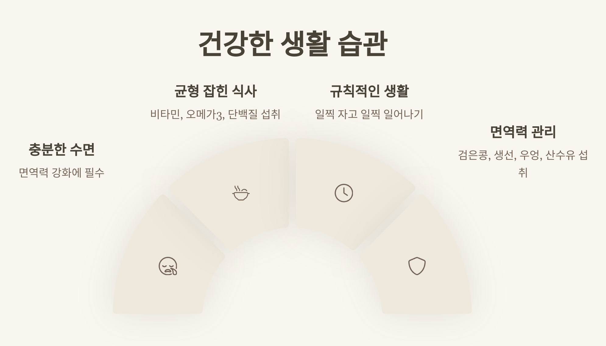 충분한 수면과 규칙적인 생활은 면역력 강화에 필수입니다. 일찍 자고 일찍 일어나는 습관을 들이세요 .