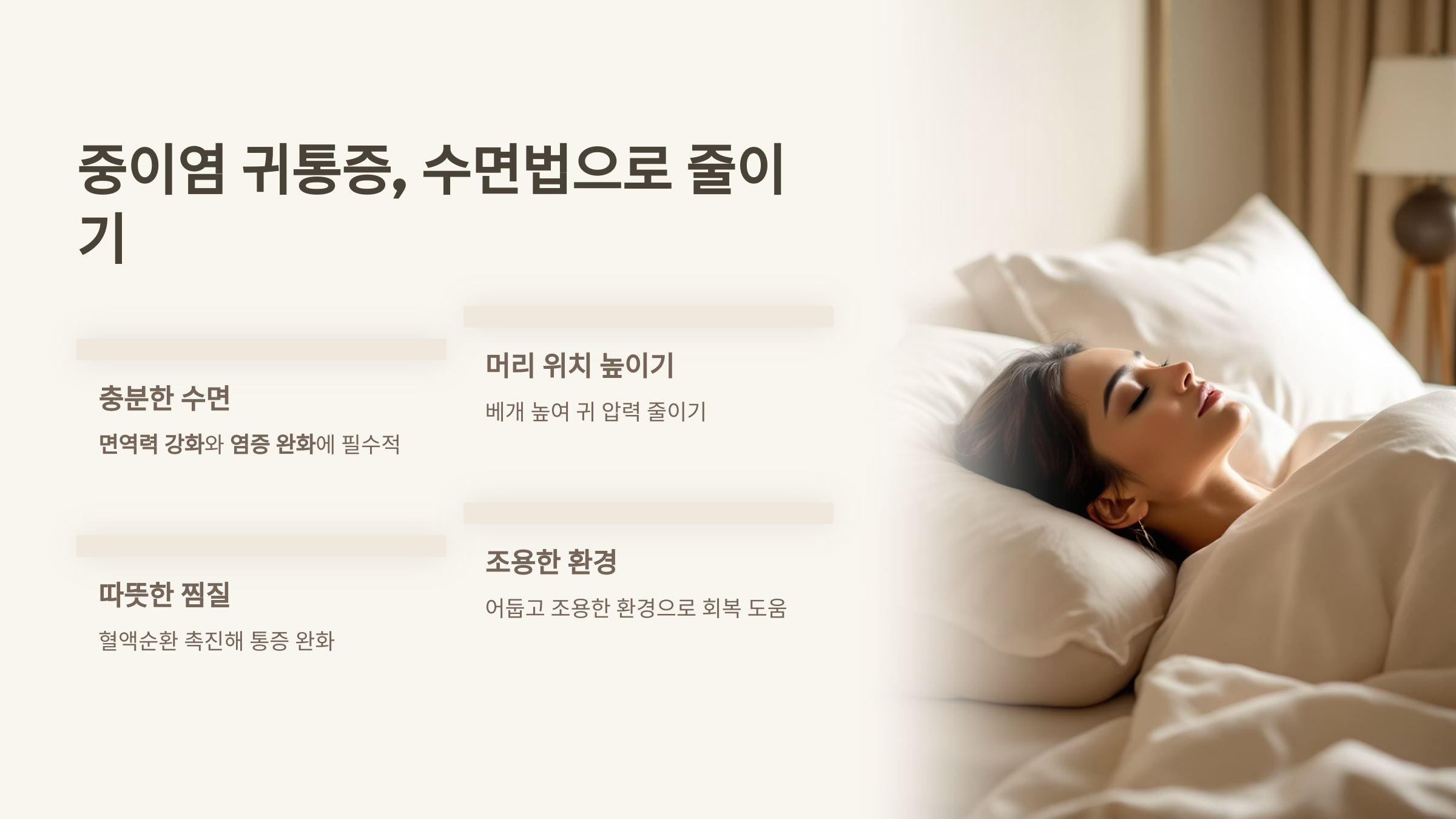 2️⃣ 중이염 귀통증, 수면법으로 줄이기 🛏️