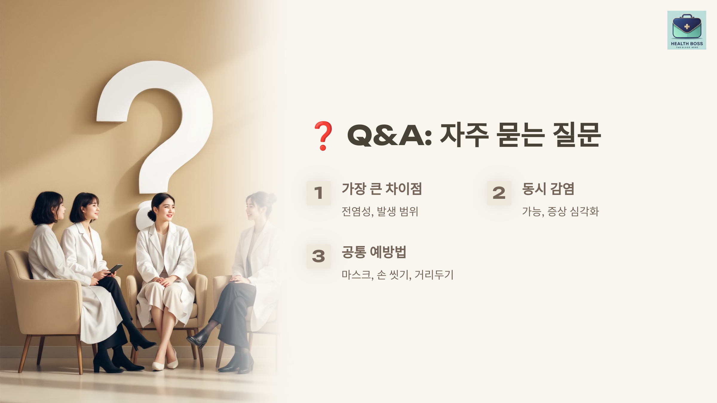 A: HMPV는 주로 소아와 면역력이 약한 사람에게 발생하며, 계절성 유행을 보입니다. 반면, COVID-19는 전 세계적으로 발생하며 전염성이 훨씬 강합니다.