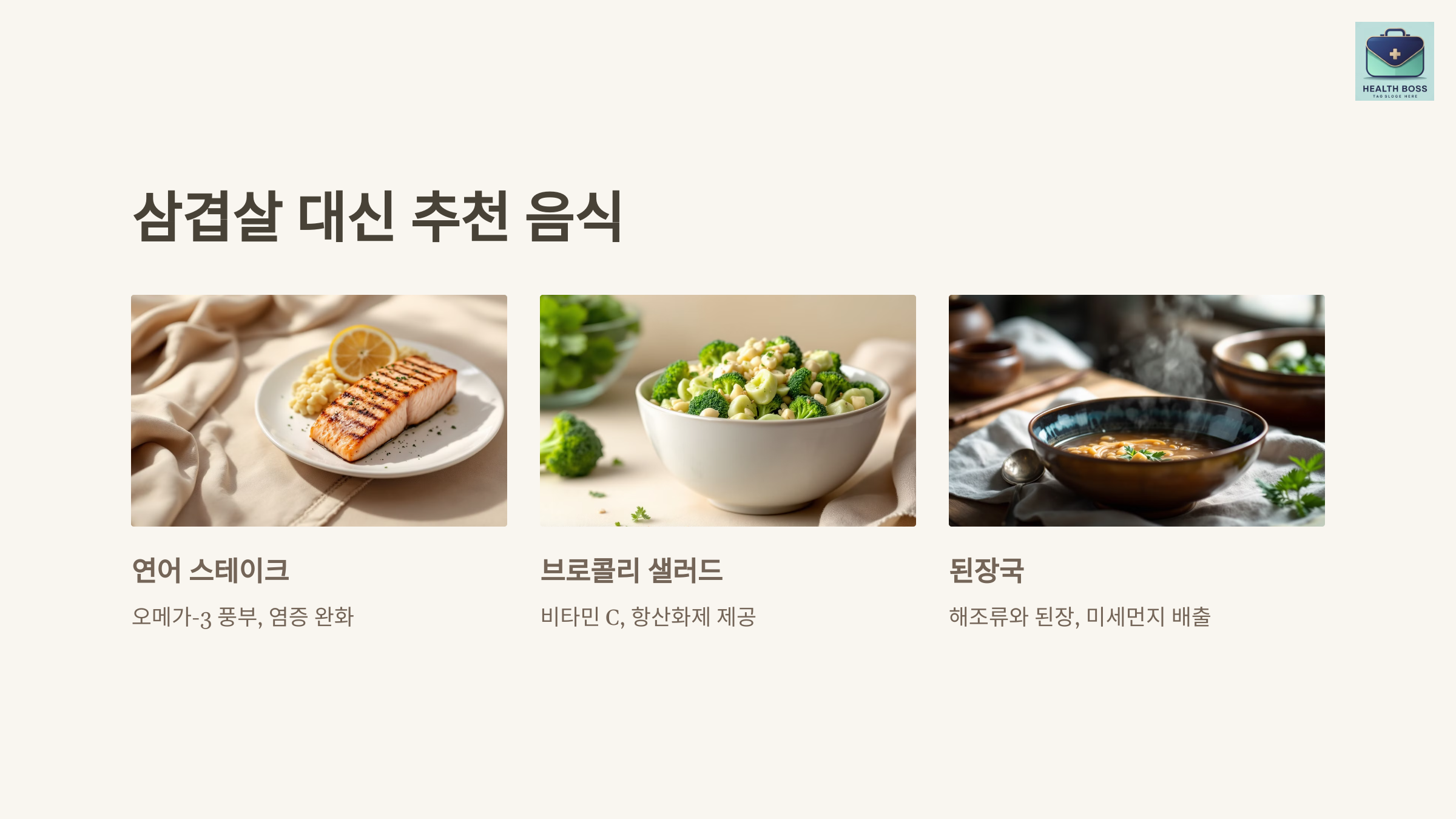3️⃣ 미세먼지 많은 날 삼겹살 대신 무엇을 먹을까? 🥗