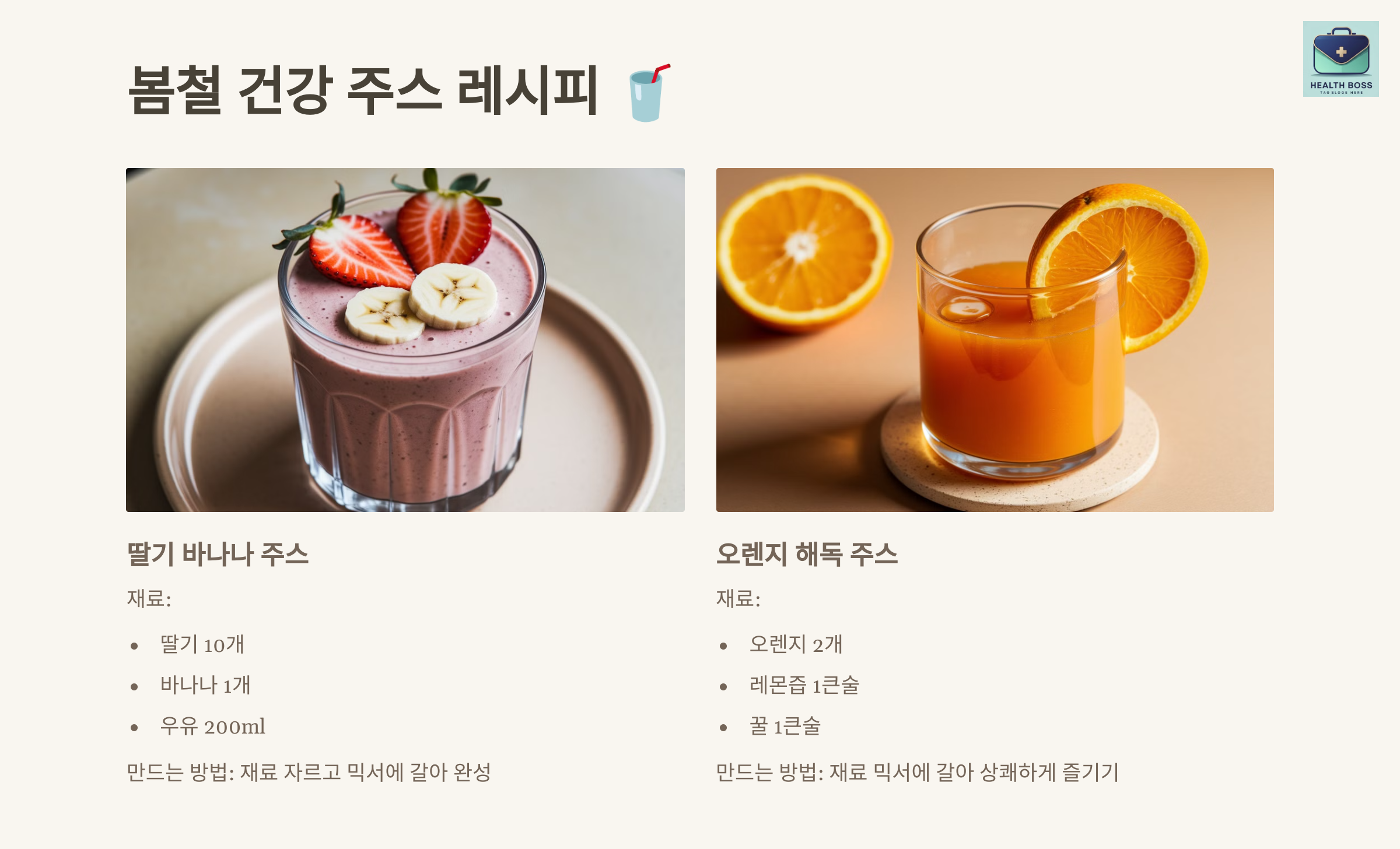 오늘은 간단하면서도 맛있는 봄철 건강 주스 레시피를 소개해 드릴게요. 😊