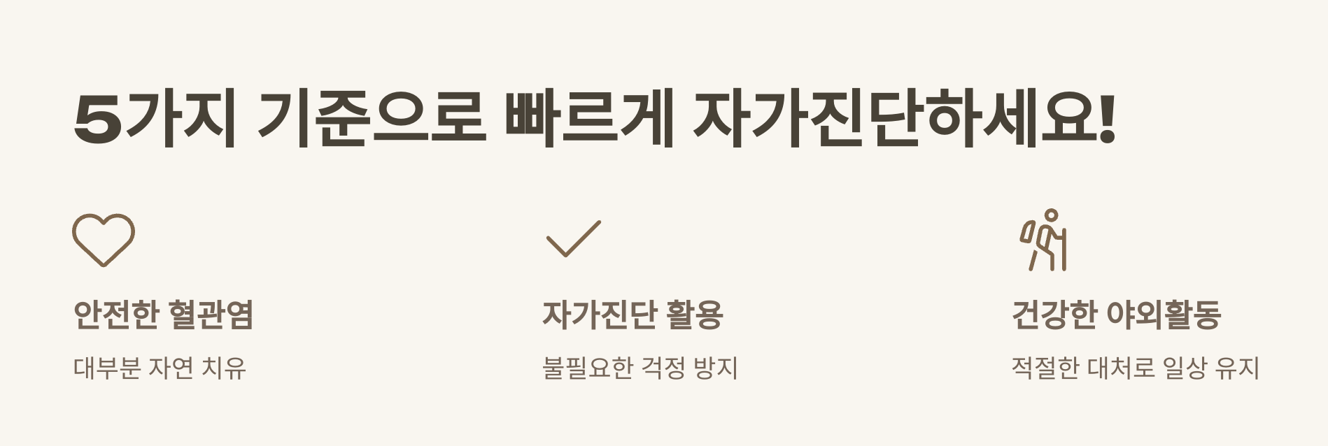 오늘 소개한 5가지 자가진단 기준을 기억하면, 불필요한 걱정 없이 건강하게 야외활동을 즐길 수 있습니다.
