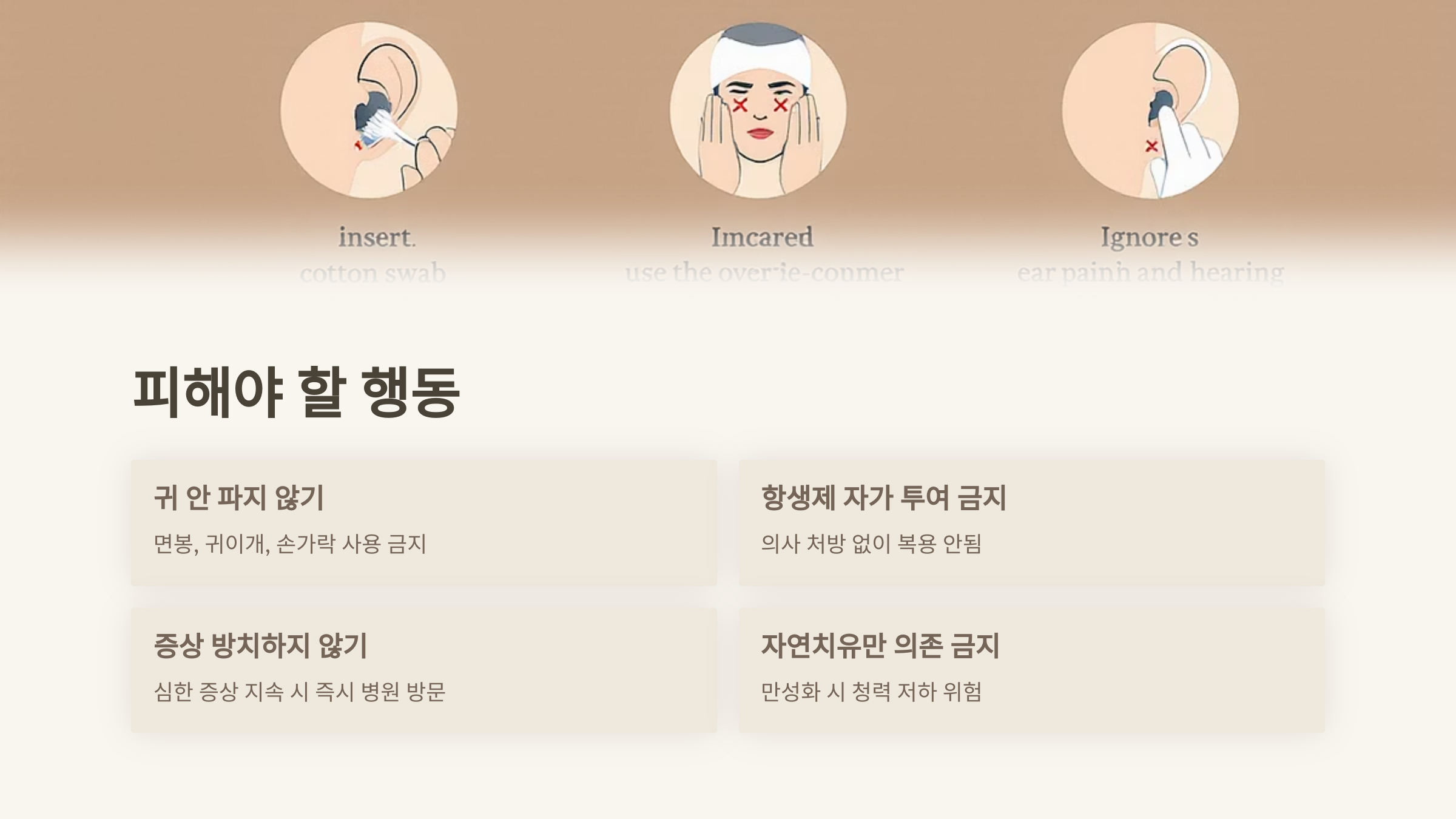 2️⃣ 중이염 자가치료, 절대 피해야 할 행동 🚫