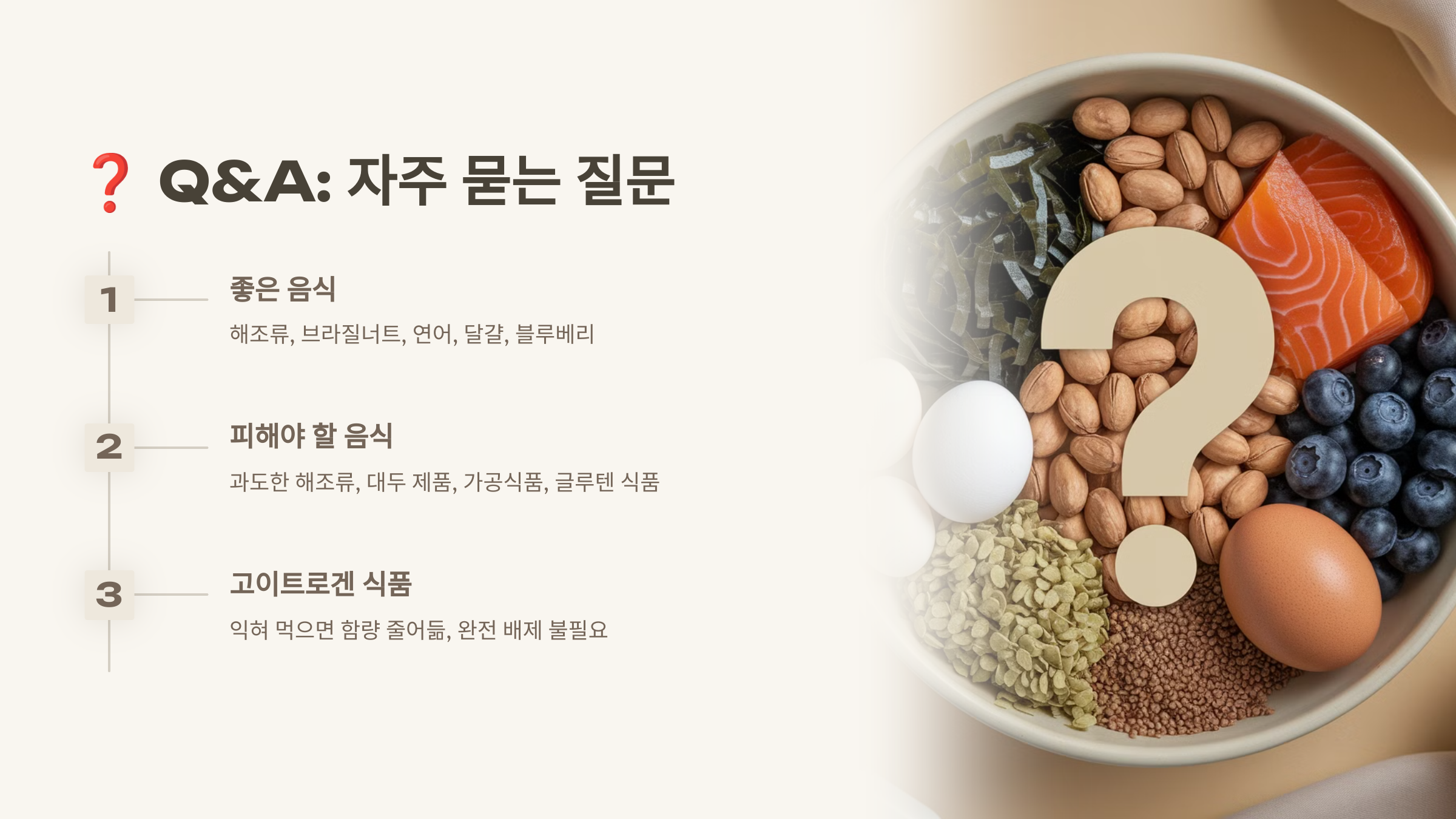 📢 TIP: 특정 음식을 완전히 배제하기보다, 적정량으로 조절하며 자신의 몸 상태를 관찰하세요.