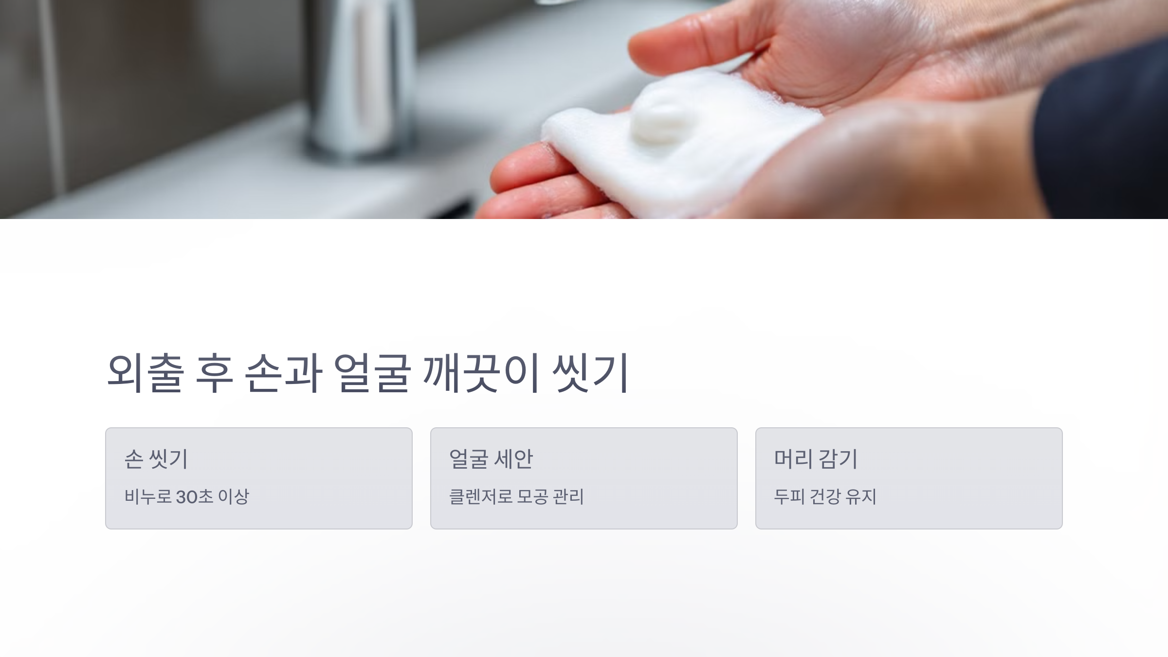 4️⃣ 외출 후 손과 얼굴 깨끗이 씻기 🧼